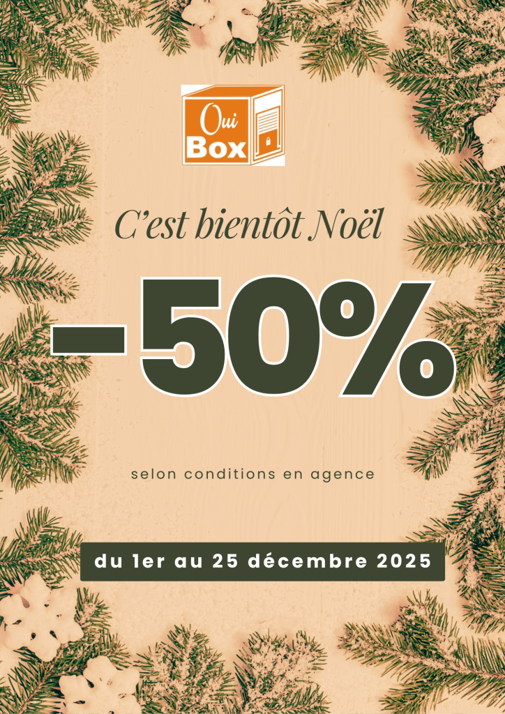 OUI BOX vous offre -50 % sur le 1er mois pour toute nouvelle réservation de box ou de bureau. Offre valable pour une durée limitée. Contactez-nous dès maintenant pour réserver votre espace au meilleur prix.